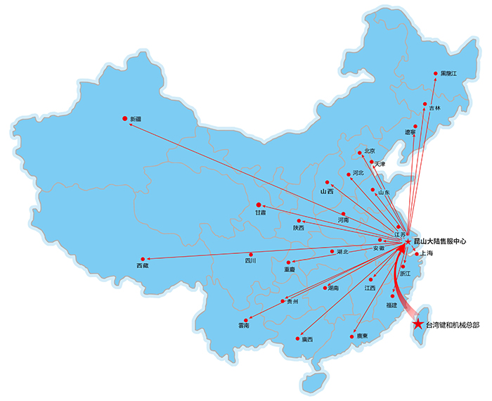 昆山嘉尼赫機械有限公司為臺灣鍵和機械股份有限公司在大陸設(shè)定的唯一子公司,本公司于2010年4月在昆山仕泰隆模具城成立,應(yīng)市場需求于2015年2月搬遷至昆山周市鎮(zhèn)成立鍵和中國售服中心。設(shè)有獨立的零配件倉庫及機臺大修車間,機臺樣機展示廳。